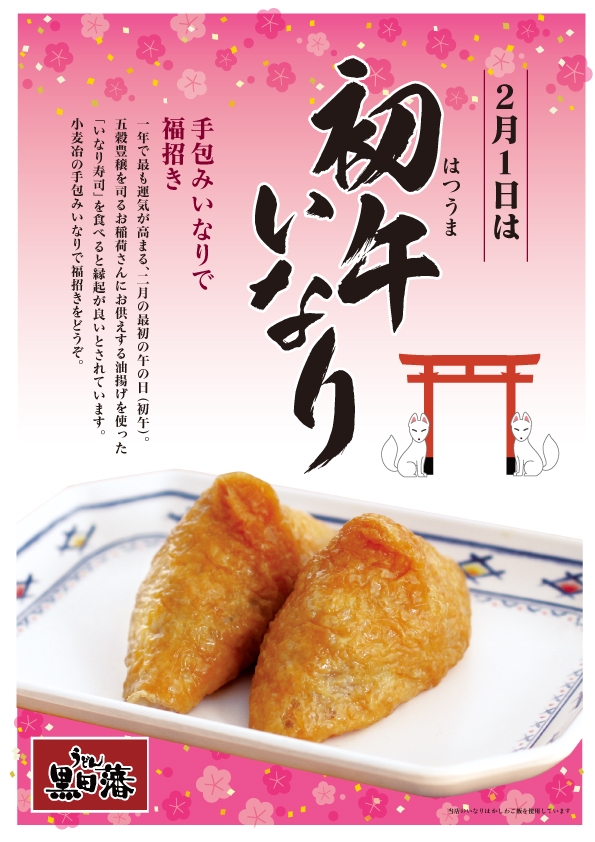 1/30(金)・1/31(土)・2/1(日)の3日間、初午いなりを販売いたします!